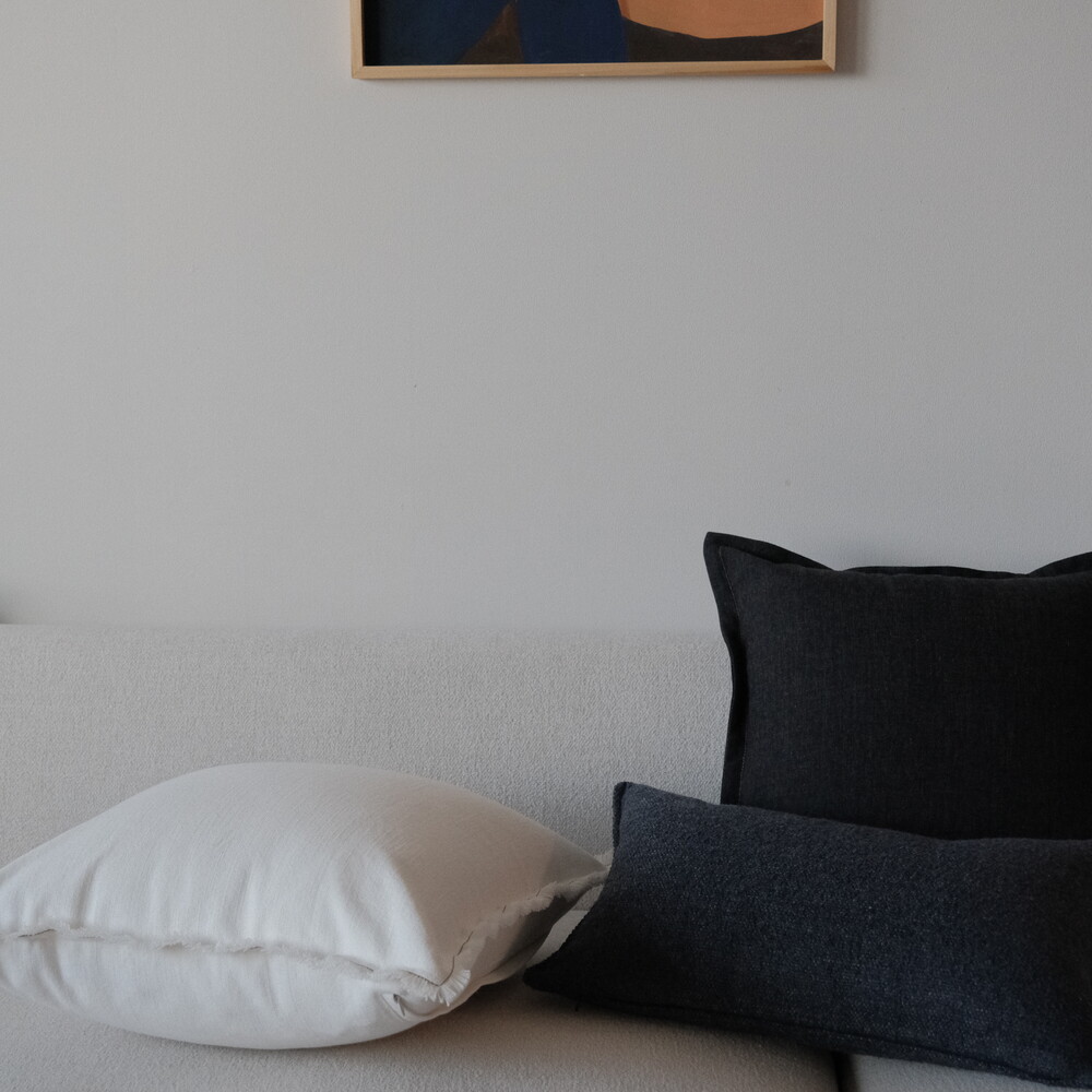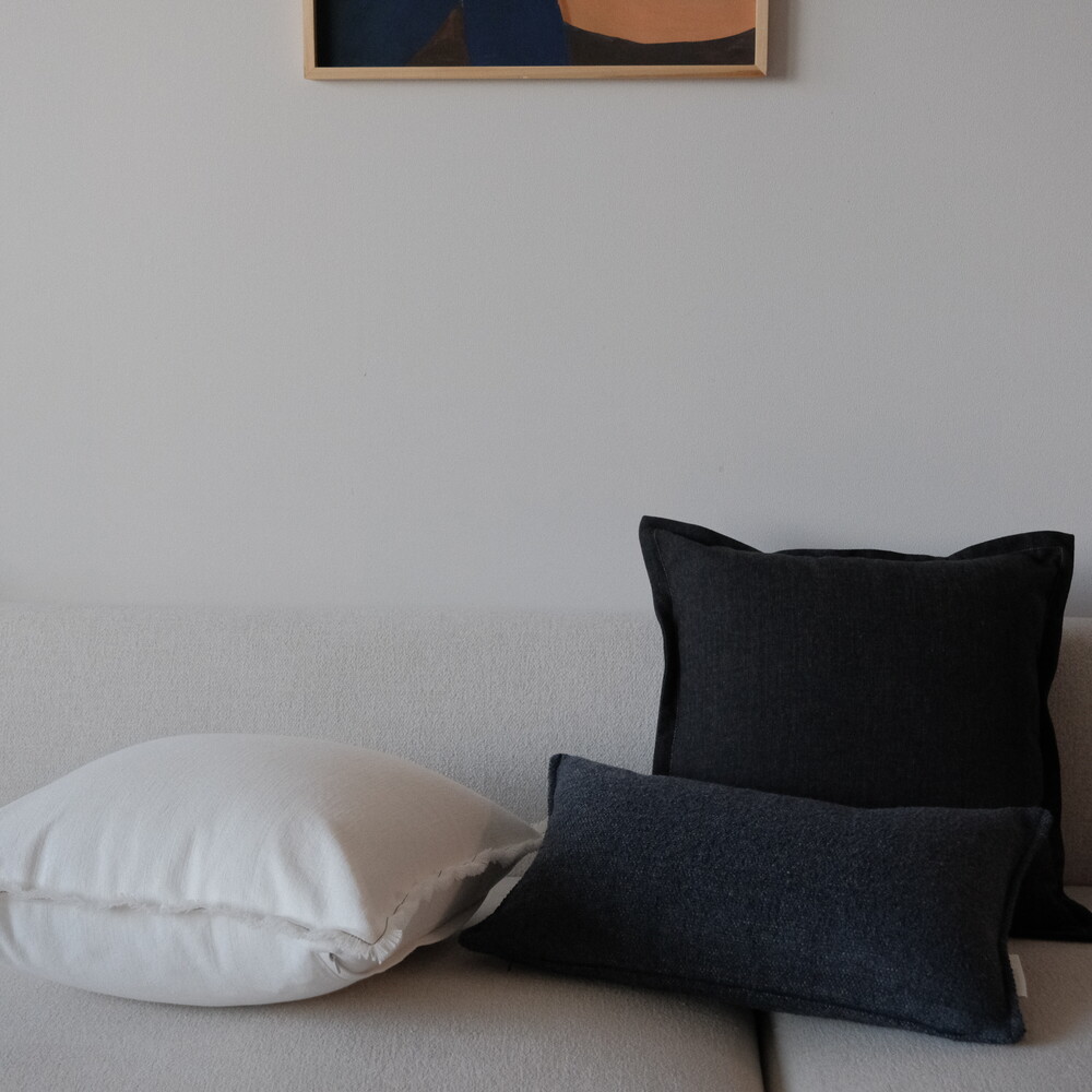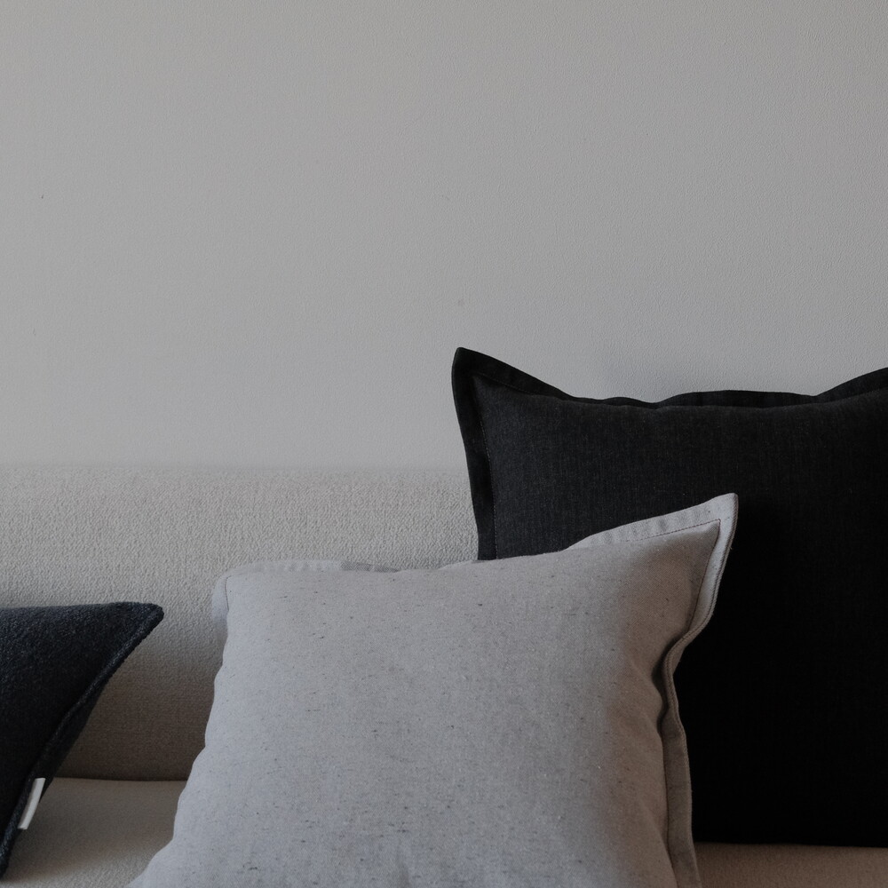 소재 믹스로 구김이 덜 가고 부드러움이 돋보이는 쿠션입니다.