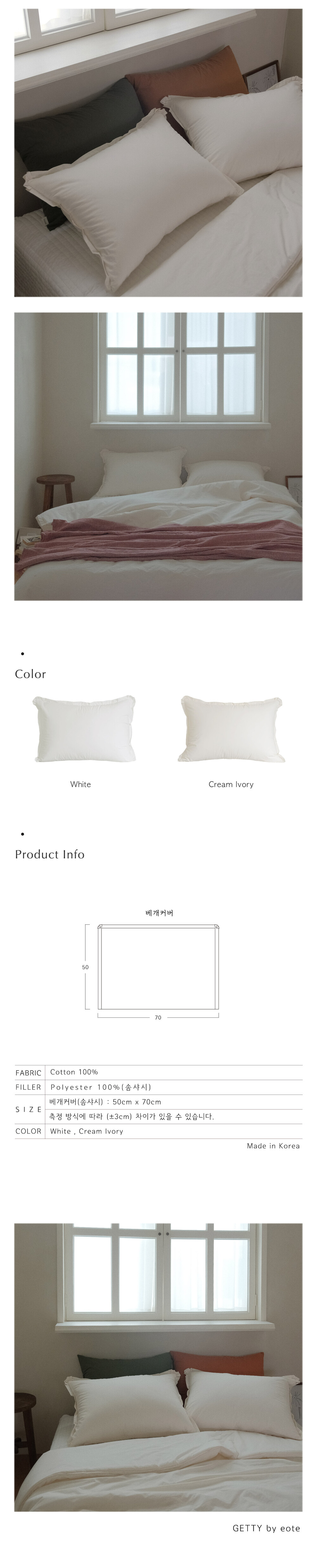 Connie cotton pillow cover[퓨어화이트, 크림아이보리]