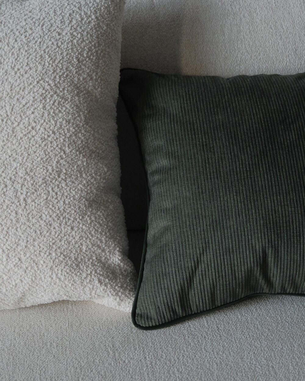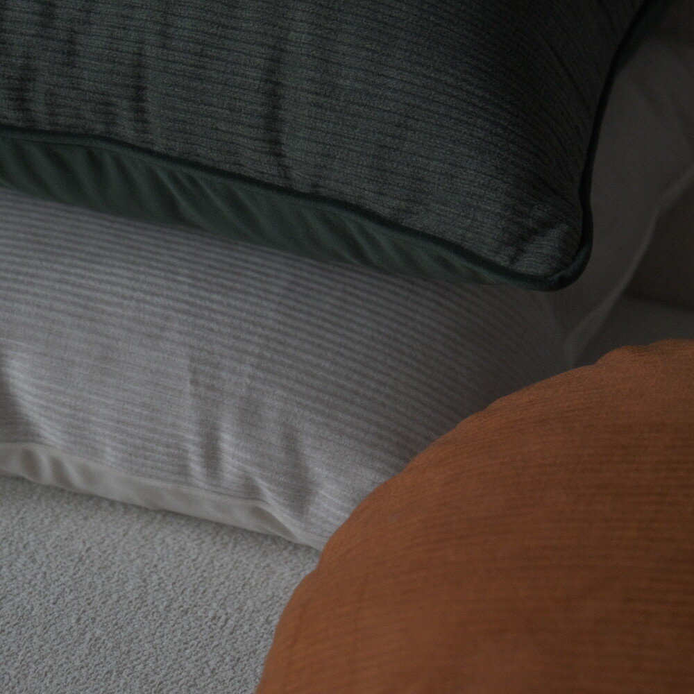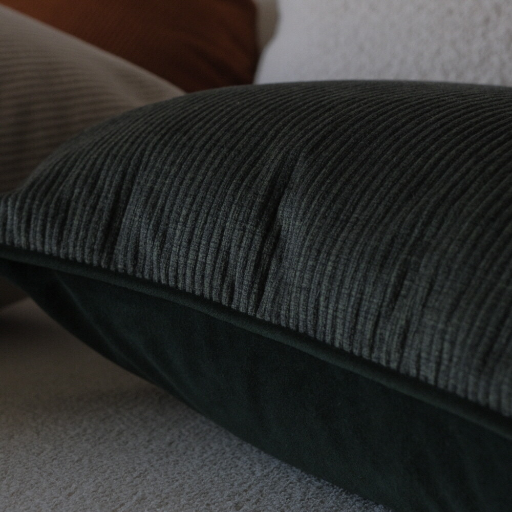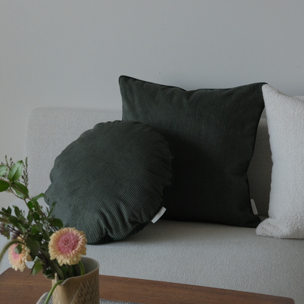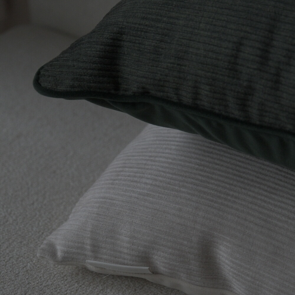 부드러운 터치감의 코듀로이 소재에 뒷면에는 조금 더 딥한 컬러로 벨벳 원단을 코디지로 선택한