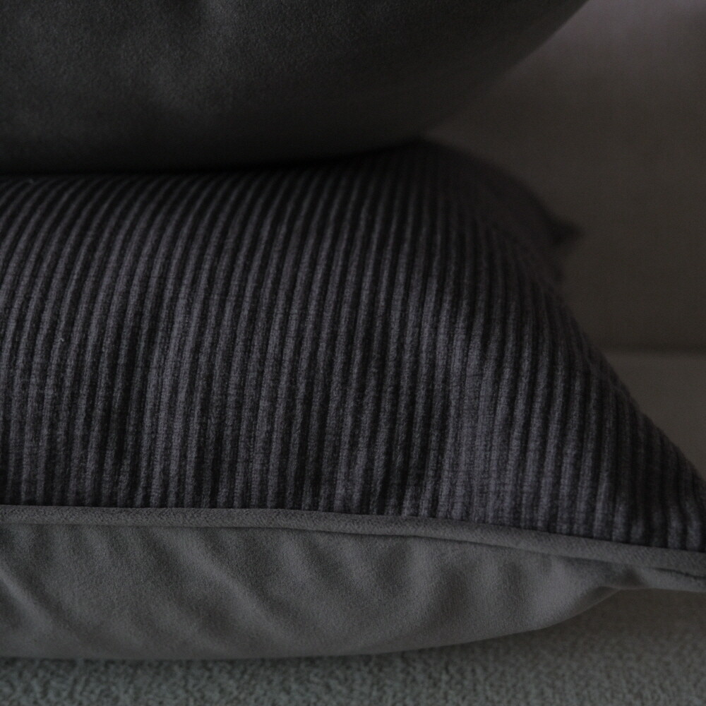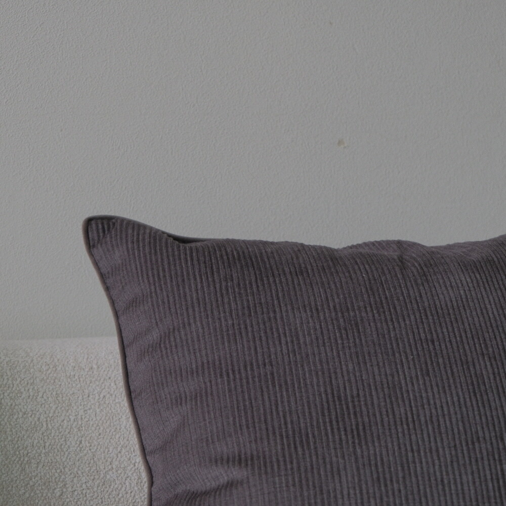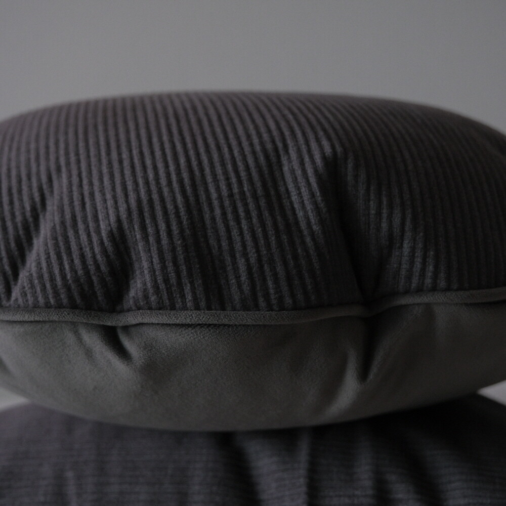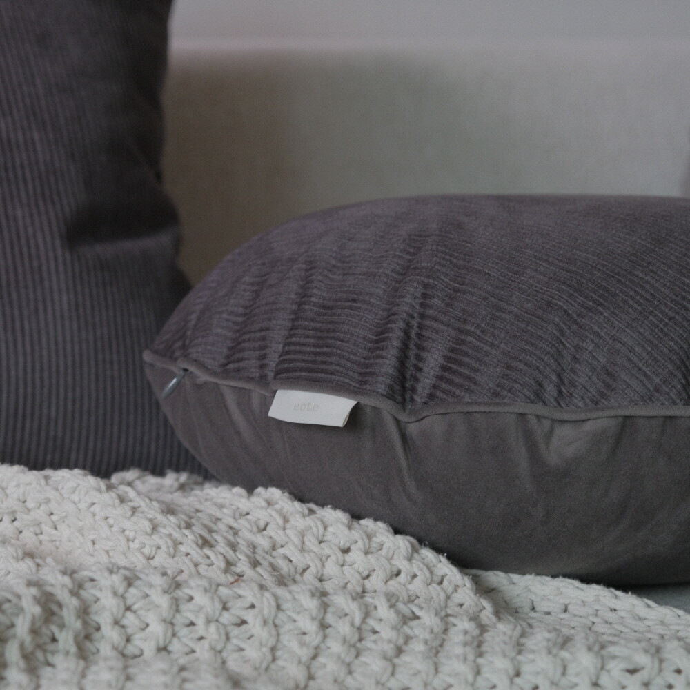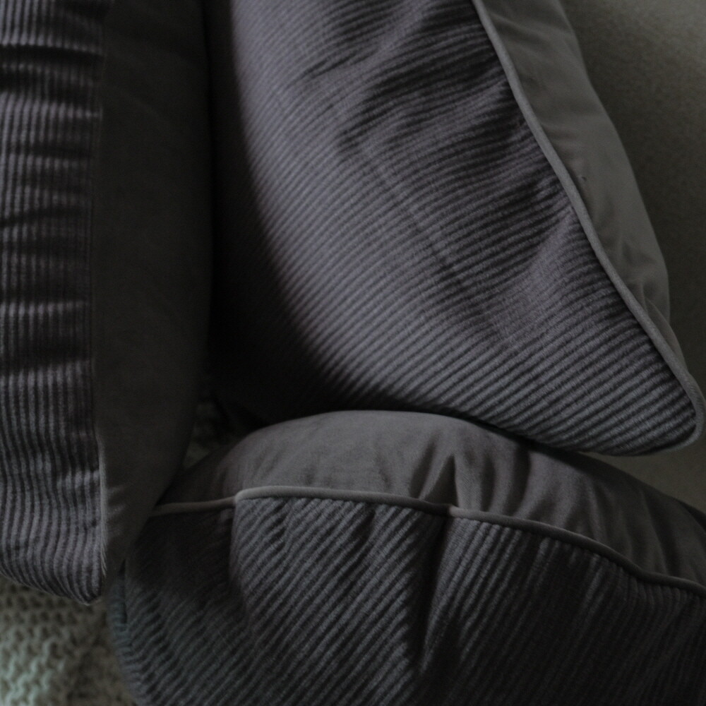 부드러운 터치감의 코듀로이 소재에 뒷면에는 조금 더 딥한 컬러로 벨벳 원단을 코디지로 선택한