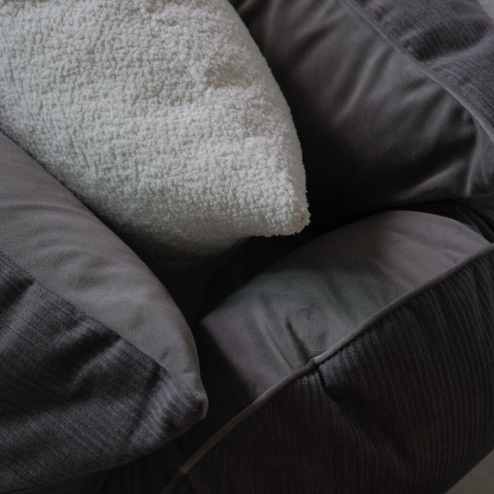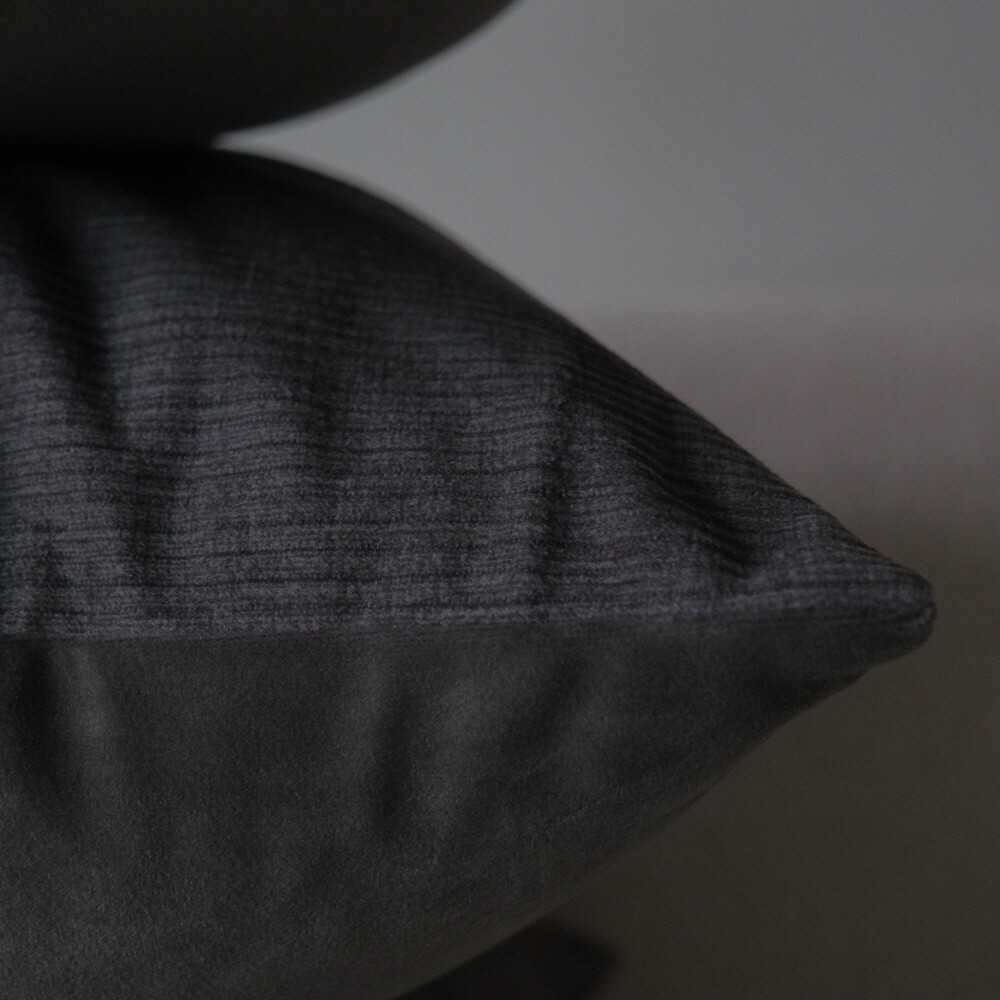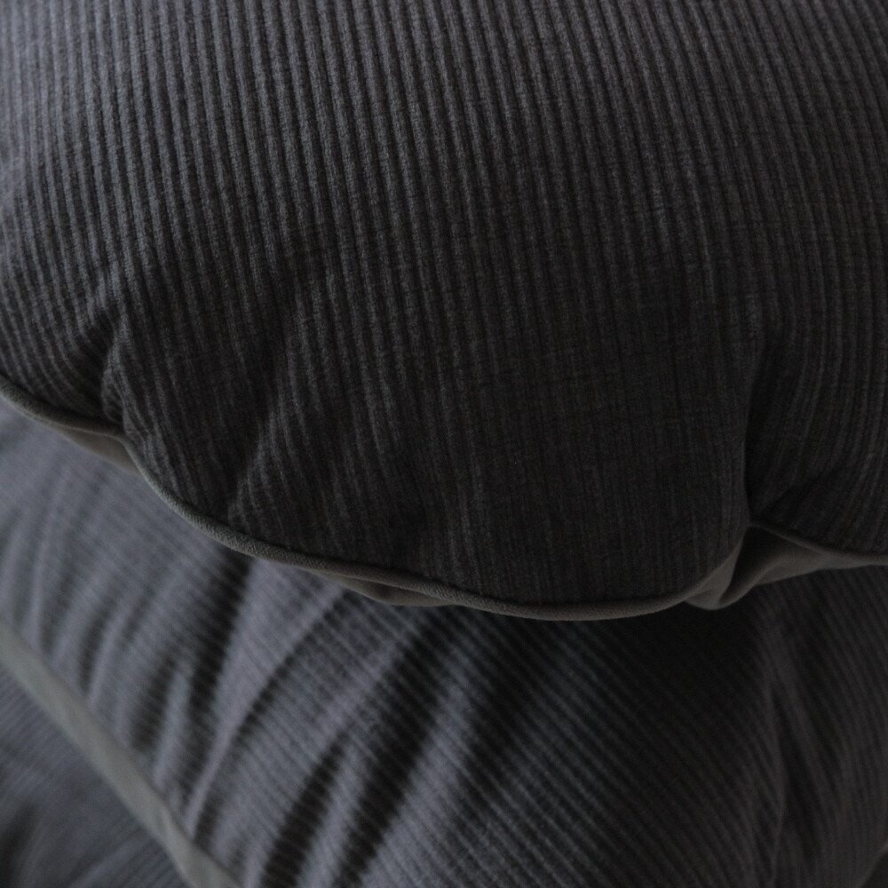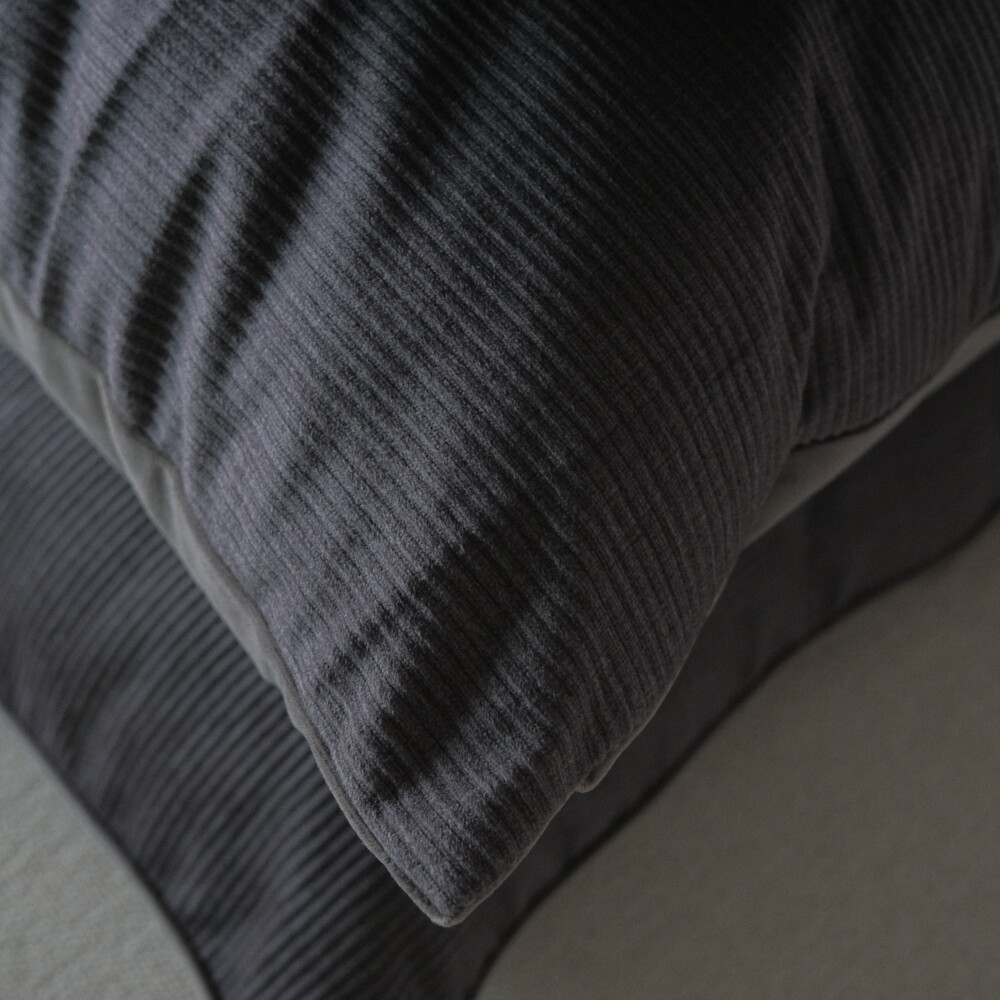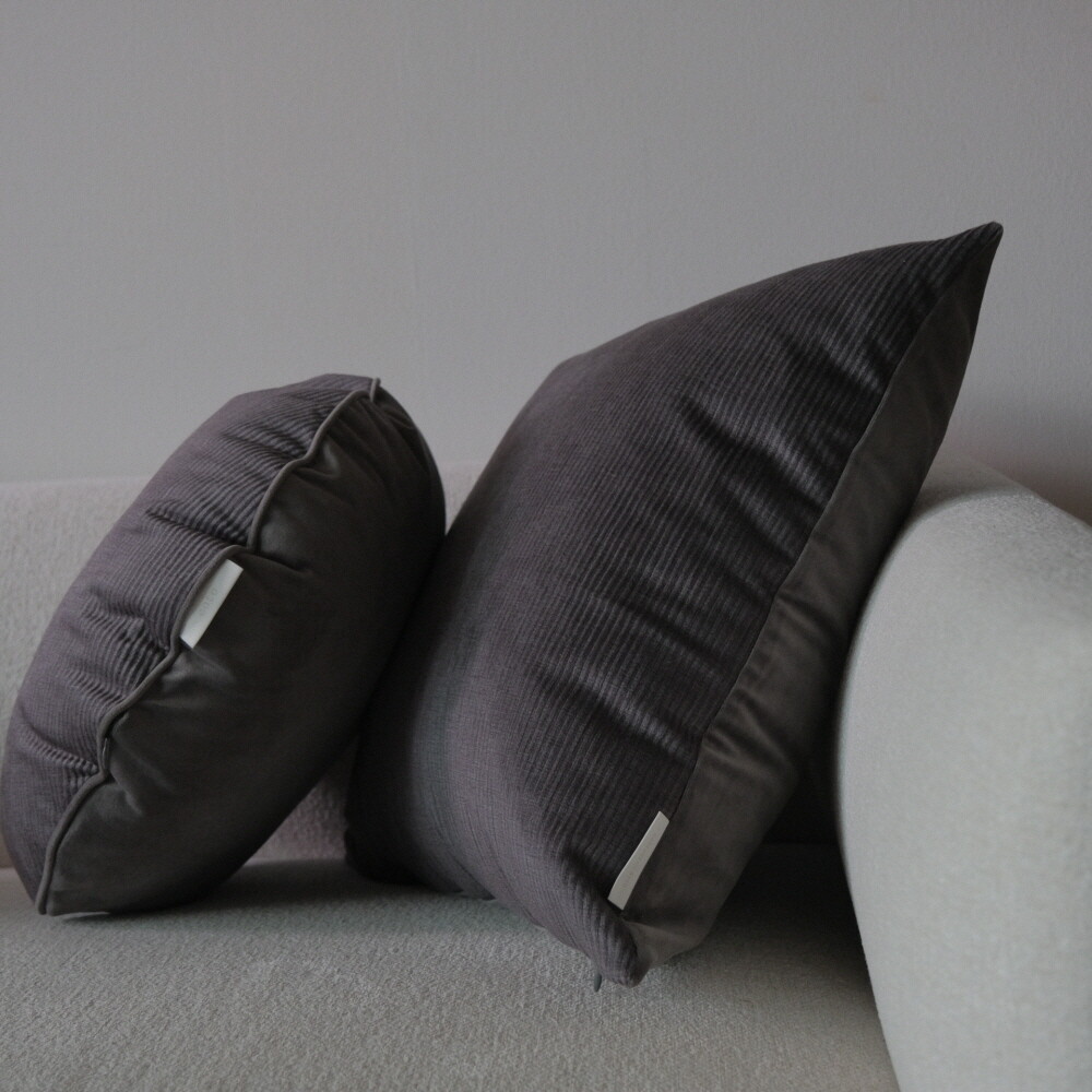 부드러운 터치감의 코듀로이 소재에 뒷면에는 조금 더 딥한 컬러로 벨벳 원단을 코디지로 선택한