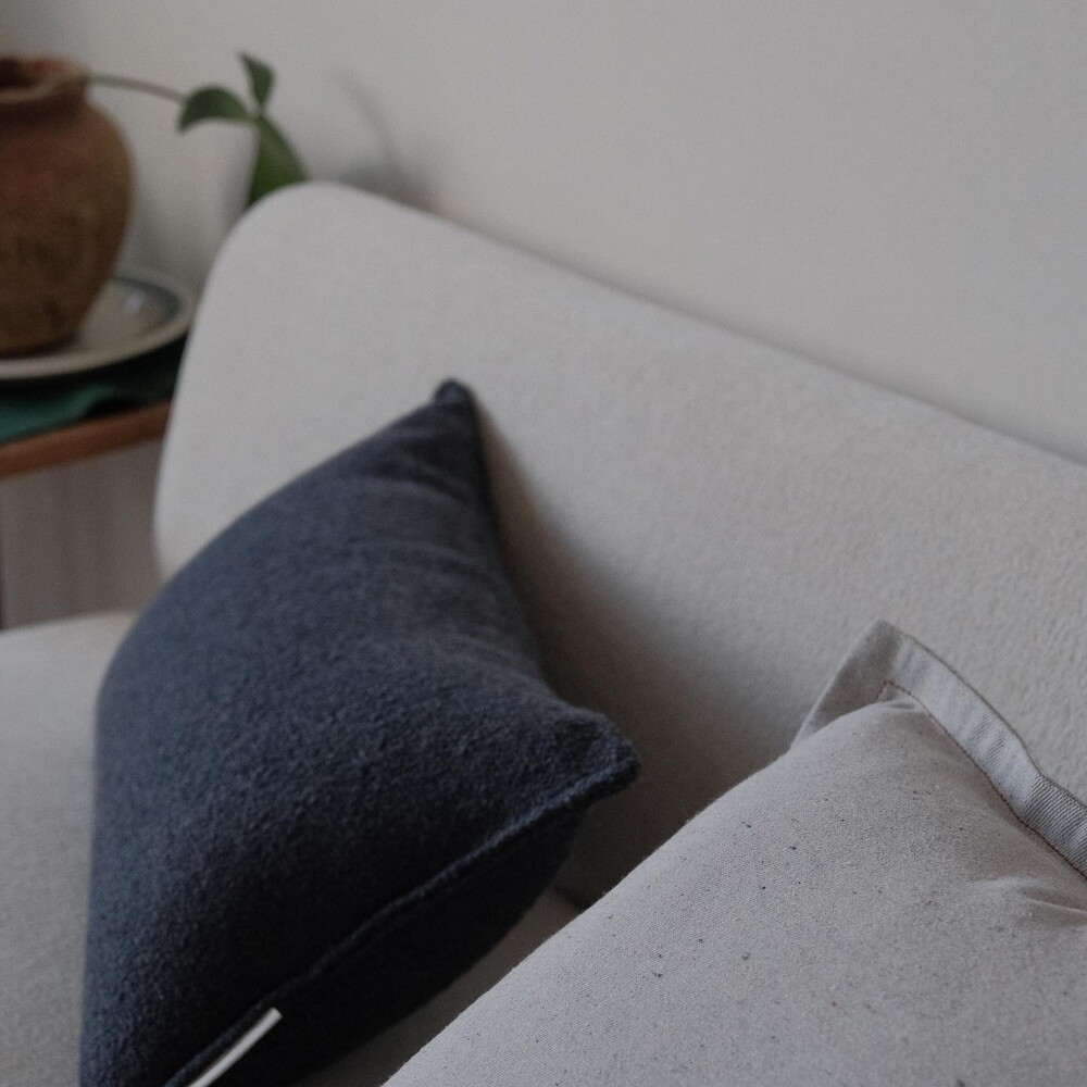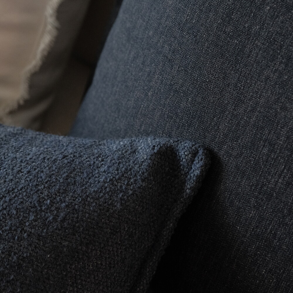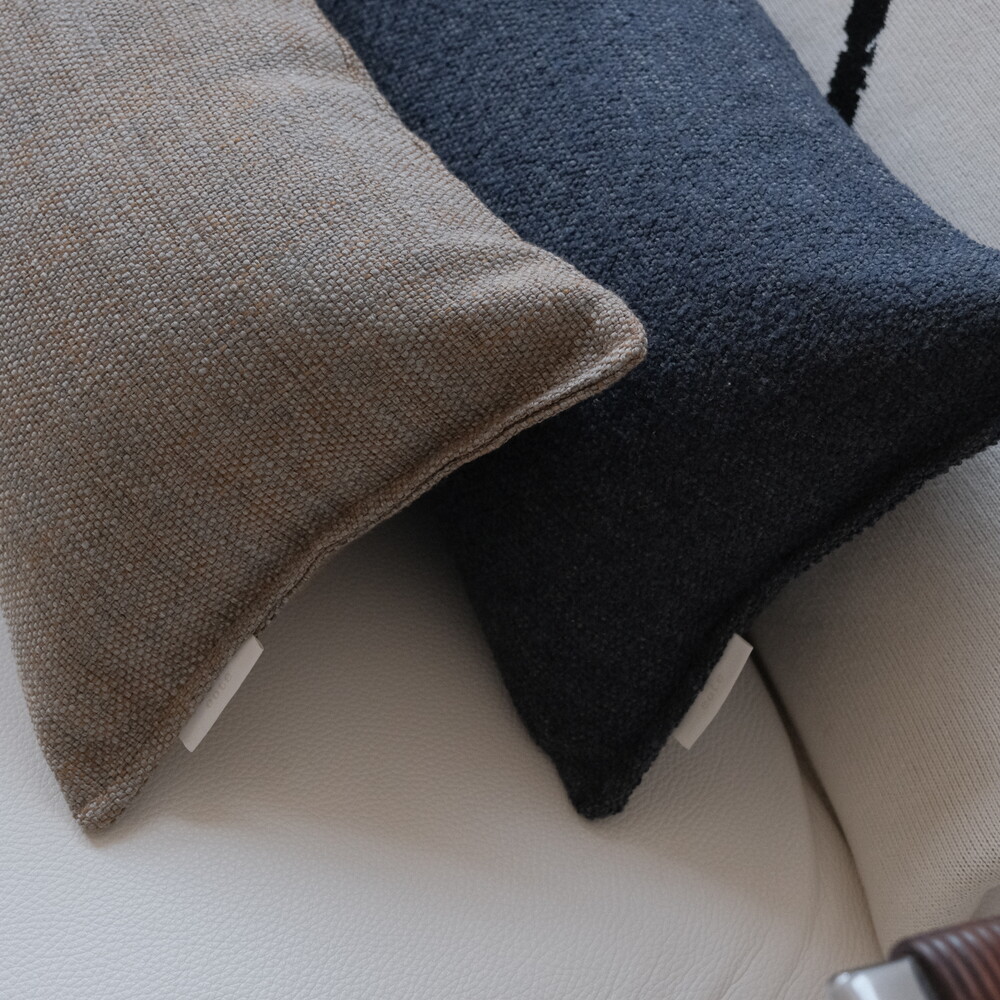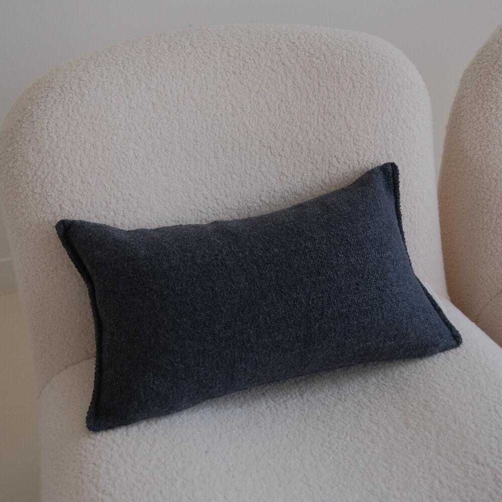 차분한 네이비 컬러에 지루하지 않은 텍스처가 확실한 인테리어 포인트가 되어주는 쿠션입니다.