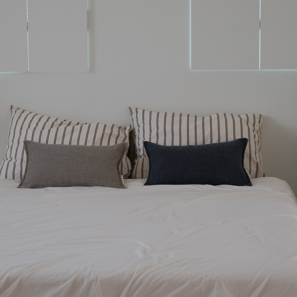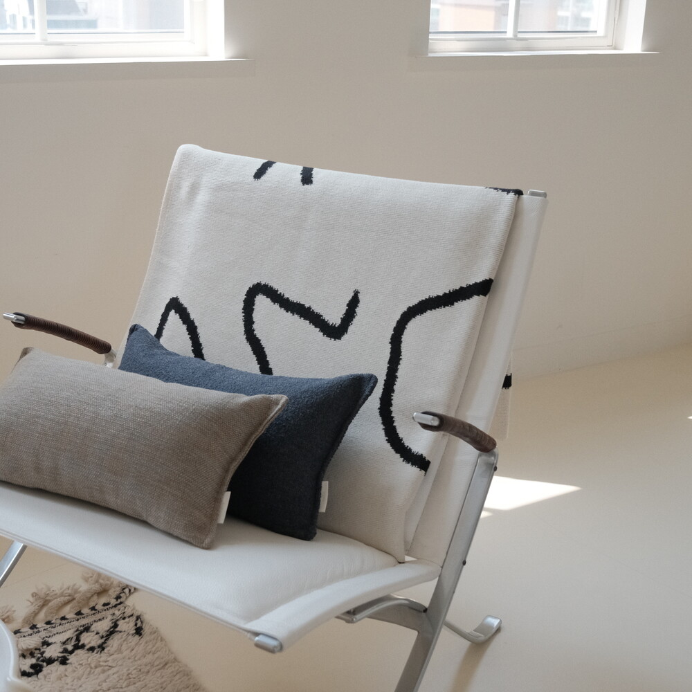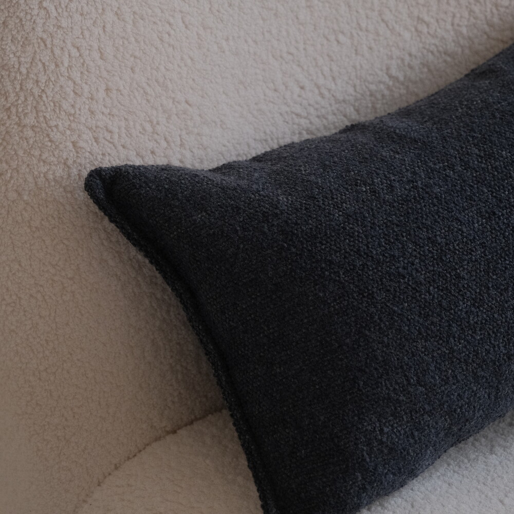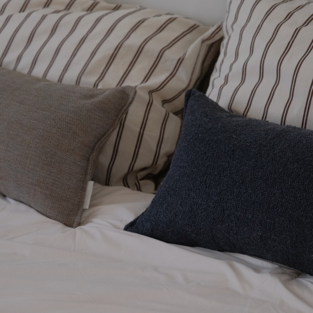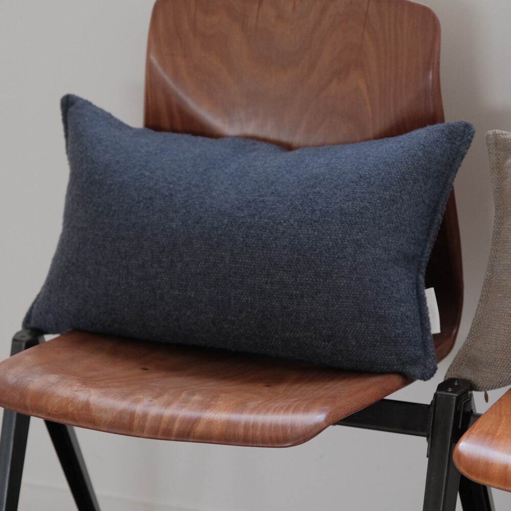 차분한 네이비 컬러에 지루하지 않은 텍스처가 확실한 인테리어 포인트가 되어주는 쿠션입니다.