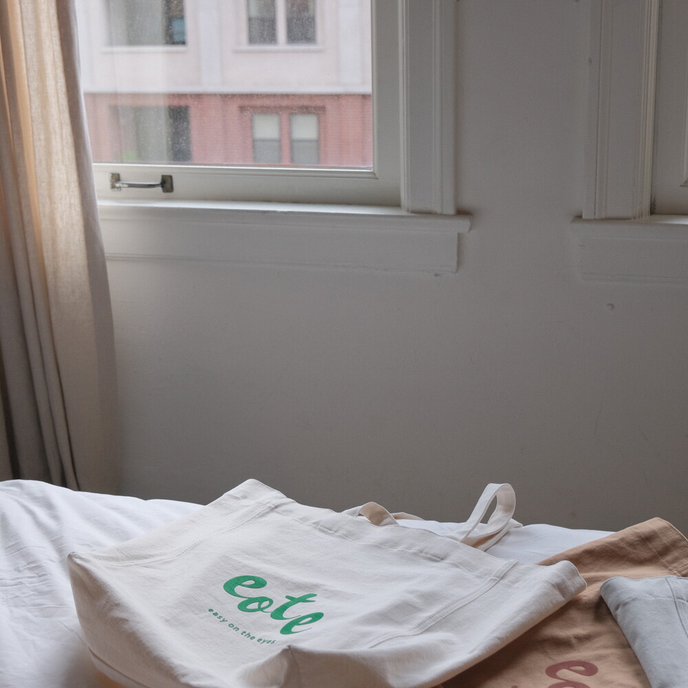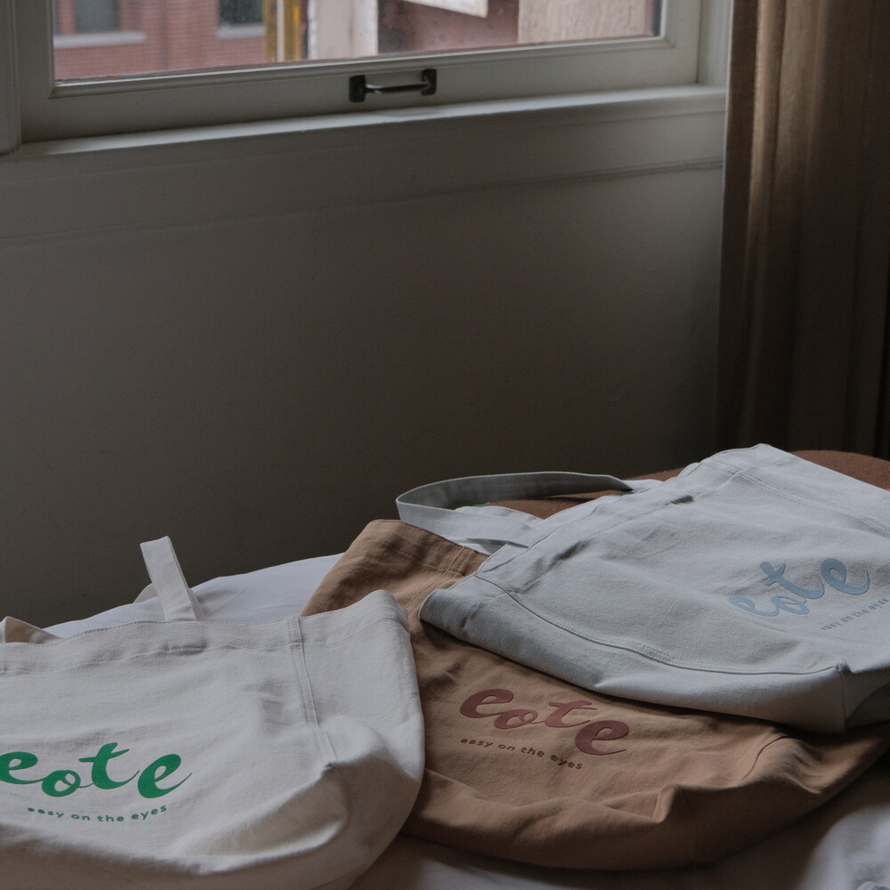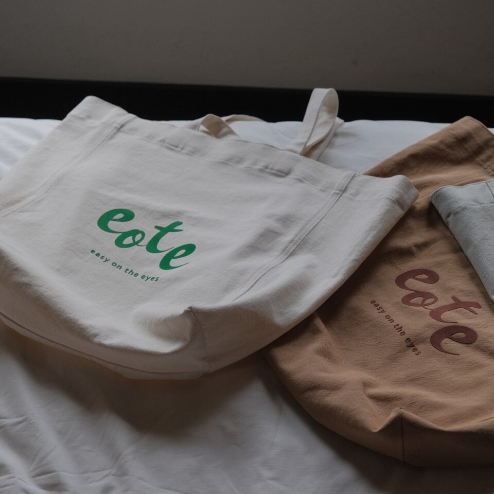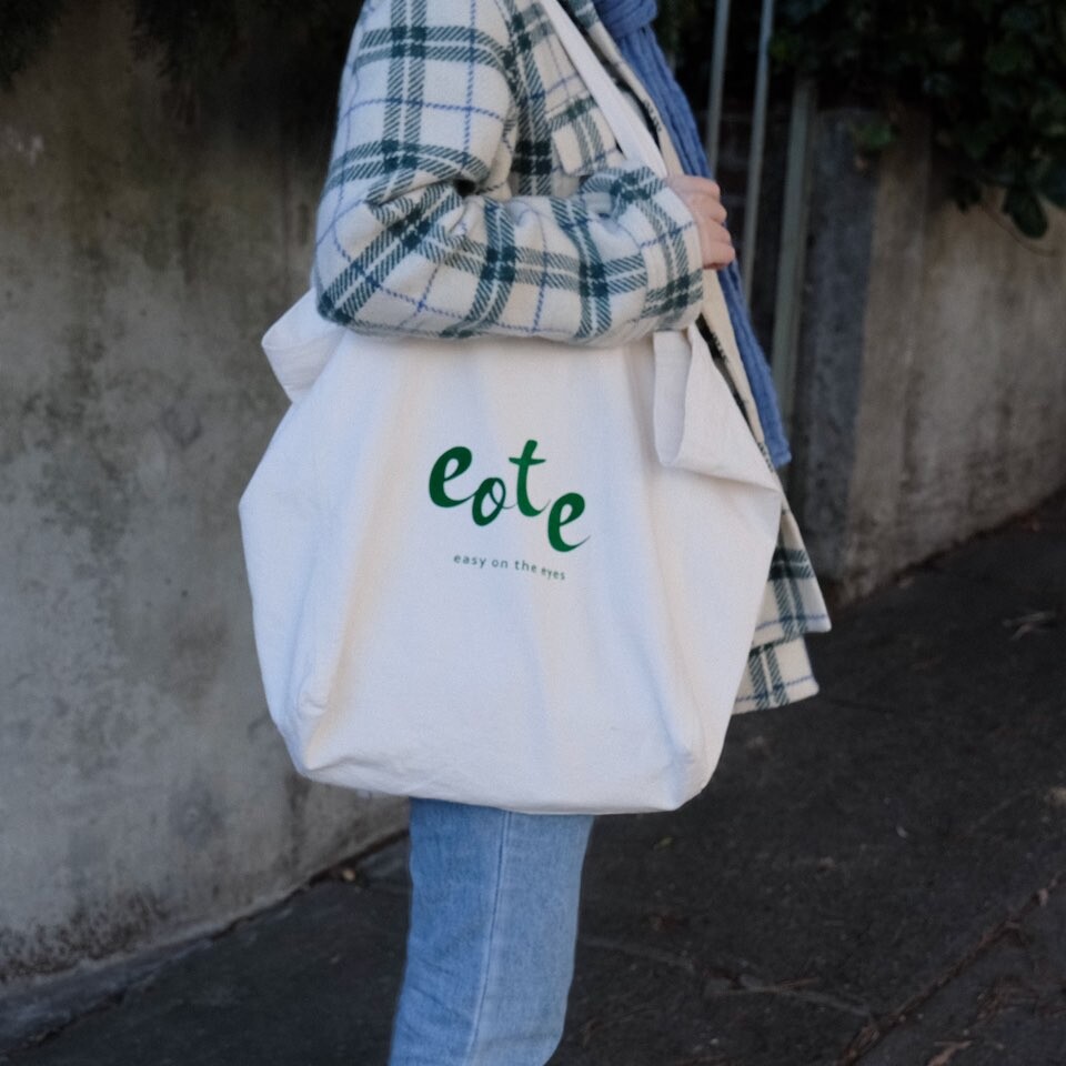 eote logo를 좀더 편안하게 디자인하여 가방에 넣었습니다.