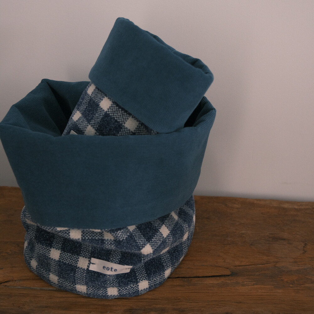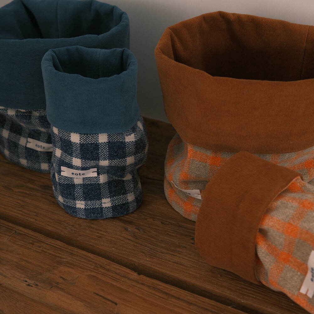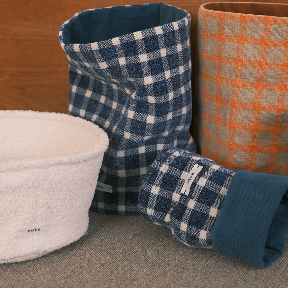 공간에 따뜻하게 녹아들 수 있는 바스켓을 제작하고 싶어 이오테만의 트렌디한 원단을 활용해 멀티 패브릭 바스켓을 제작하였습니다.