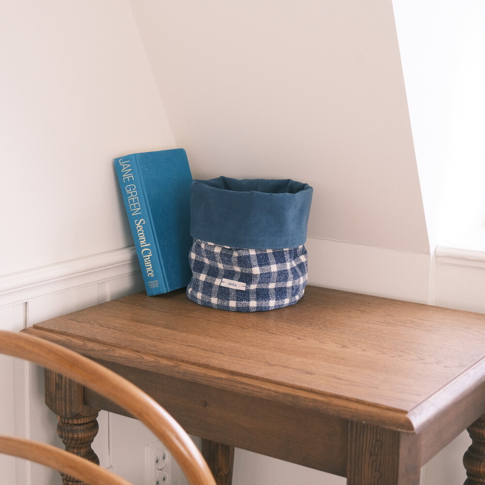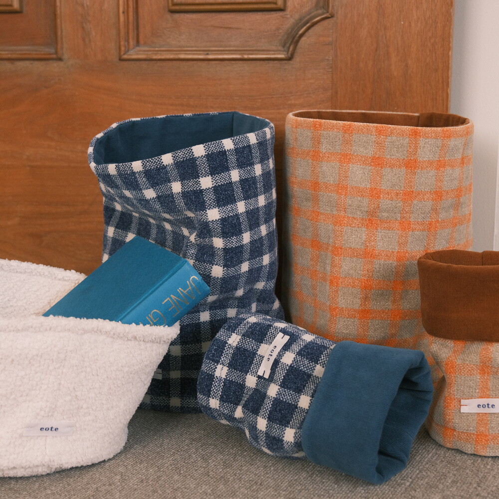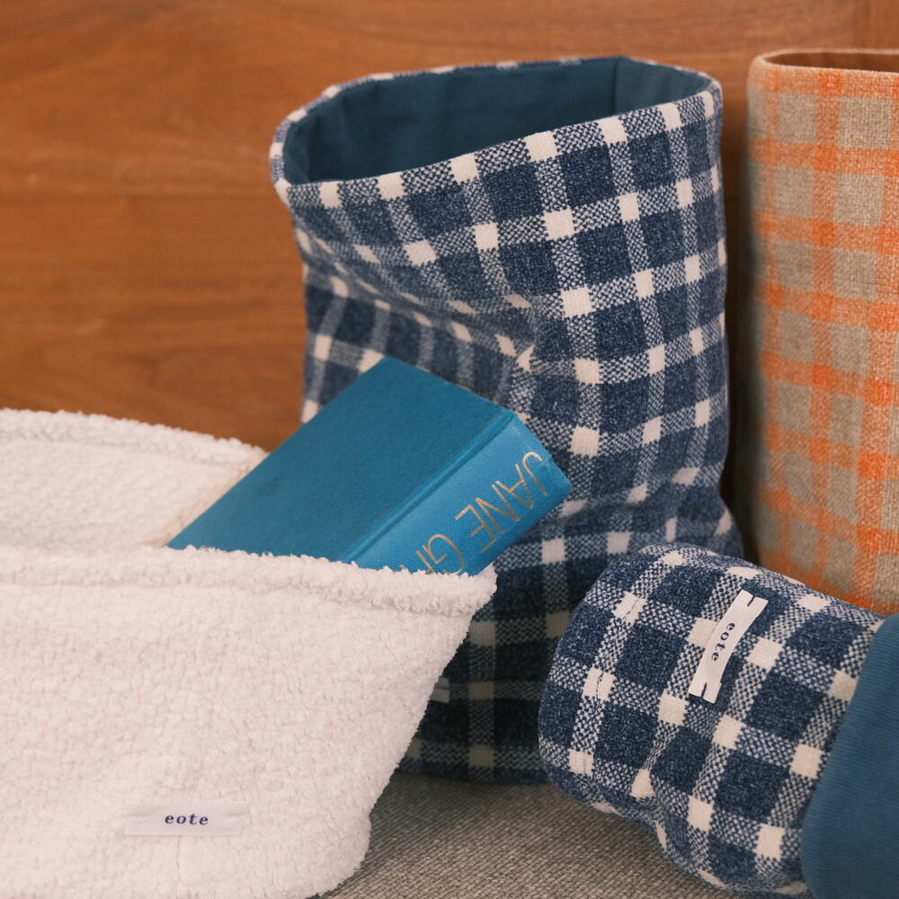 경쾌한 느낌의 CHECK 패턴이 포인트가 되어주는 블루 체크 바스켓은